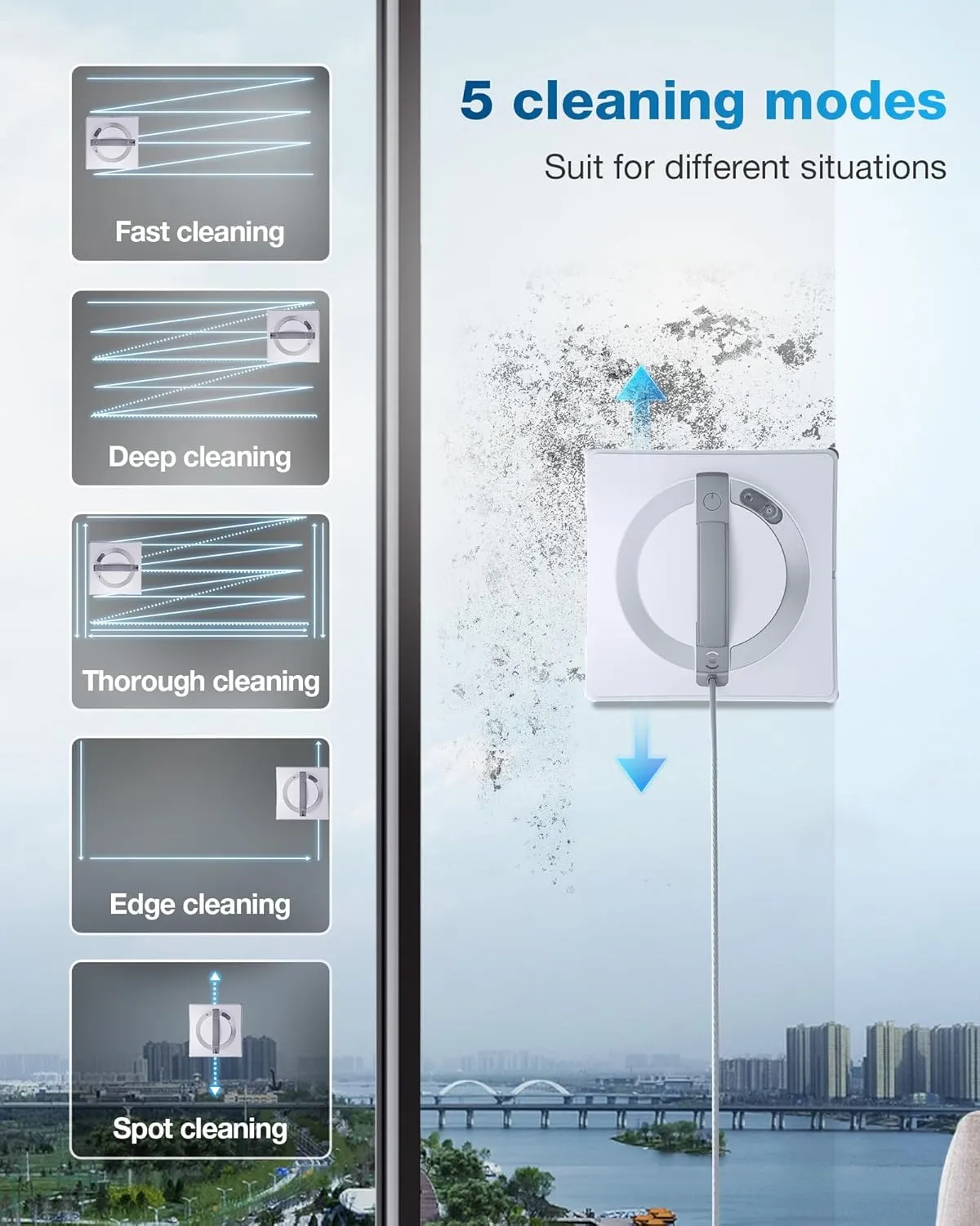 • Võrgutoitel: sobib suurepäraselt pistikupesadega ruumide, näiteks elutubade või magamistubade suurte klaaspindade jaoks, võimaldades vooluvõrku ühendamisel pidevat puhastamist.
