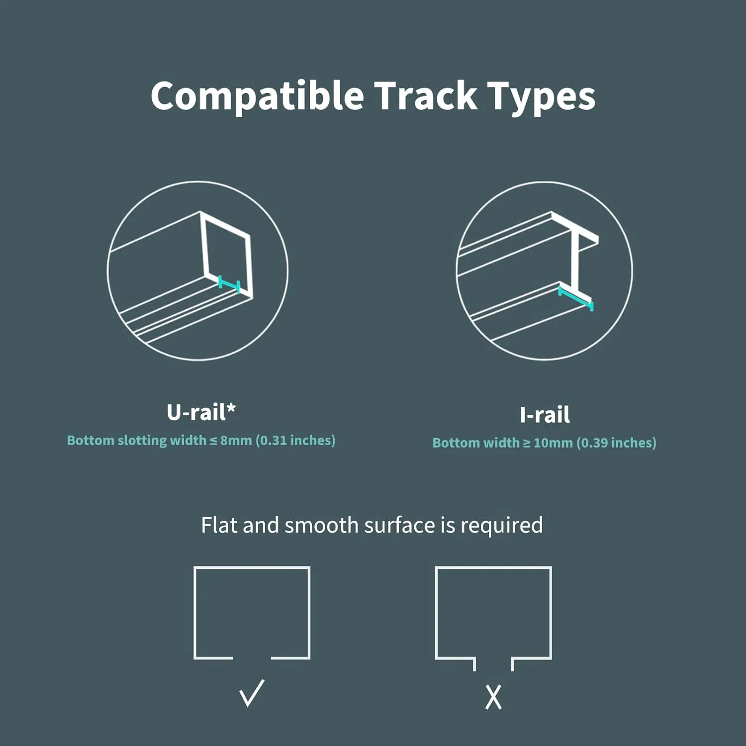 Ühilduvus rööbastega: Sobib U- ja I-tüüpi kardinarööbastele. U-tüübi puhul peab alumise ava laius olema ≤8 mm ja I-tüübi puhul ≥10 mm.