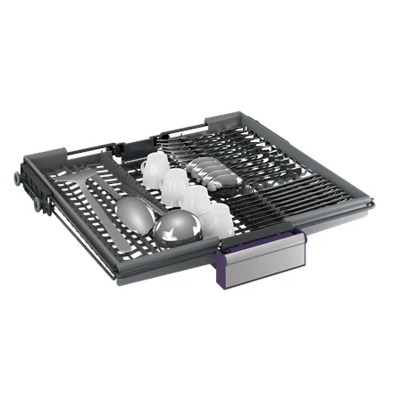Masinal on täiendav kolmas sahtel söögiriistade jaoks, mis vabastab ruumi alumistes korvides ja võimaldab paremini organiseerida nõusid.