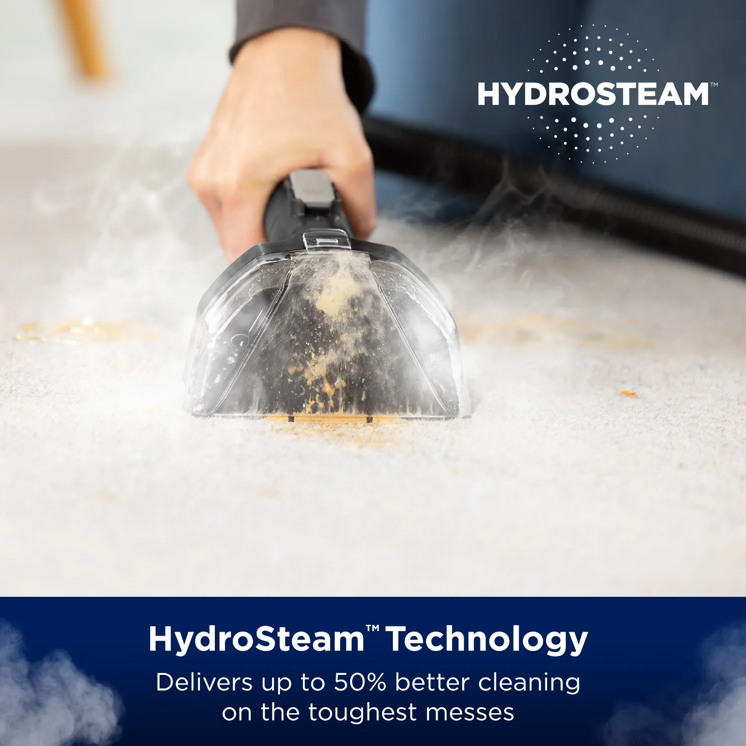 Eemalda kõige tõrksamad ja rasvasemad plekid HydroSteam™-tehnoloogia jõul. Kaasaskantav BISSELL® SpotClean® HydroSteam™ Select süvapuhastusseade eemaldab plekid HydroSteam™-tehnoloogia abil kuni 50% tõhusamalt. See puhastab erinevaid pindu, nagu vaibad, polster, autosisu, plaadid ja isegi spordijalatsid.