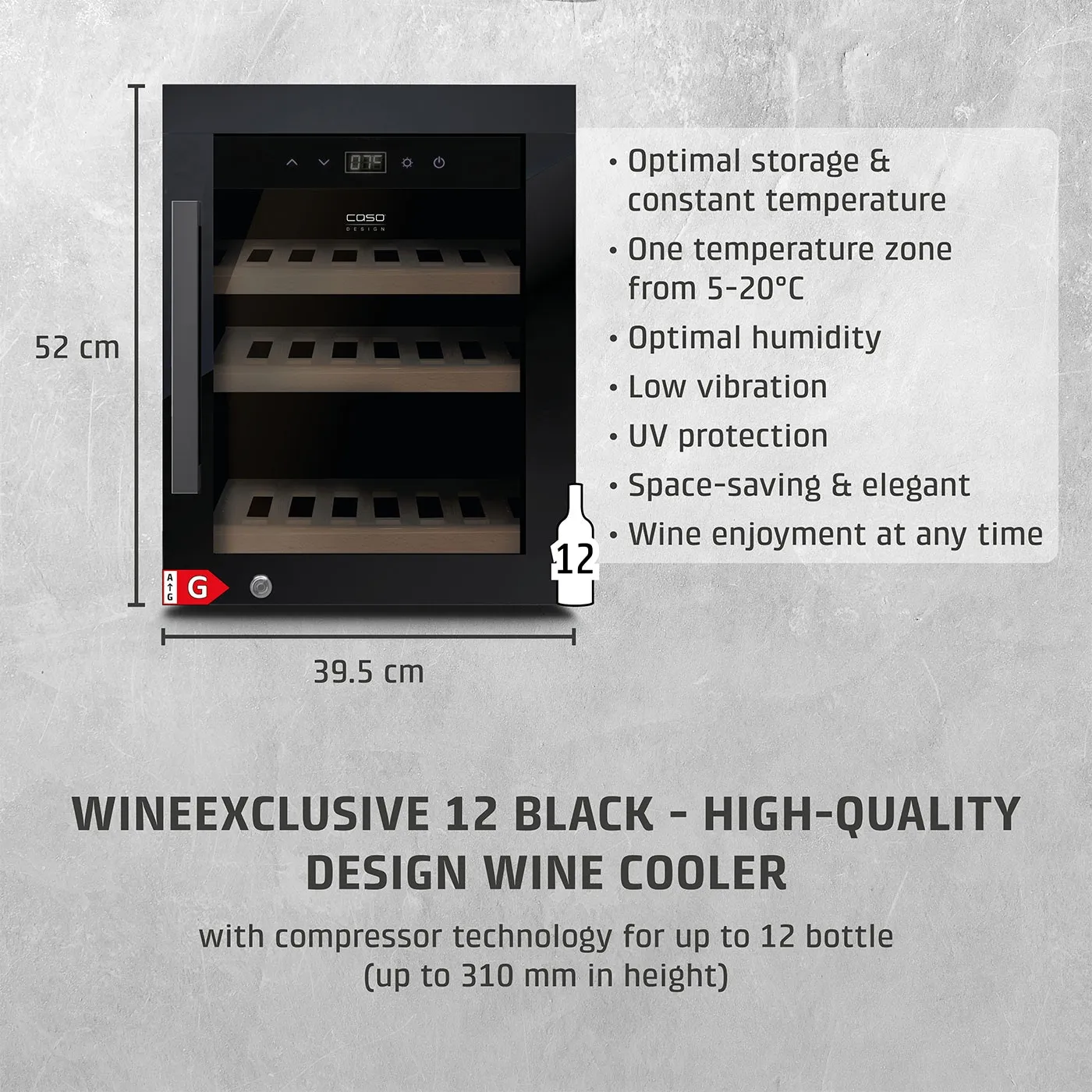 Caso WineExclusive 12, 12 pudelit, kõrgus 52, cm, (00716)- Veinikülmik