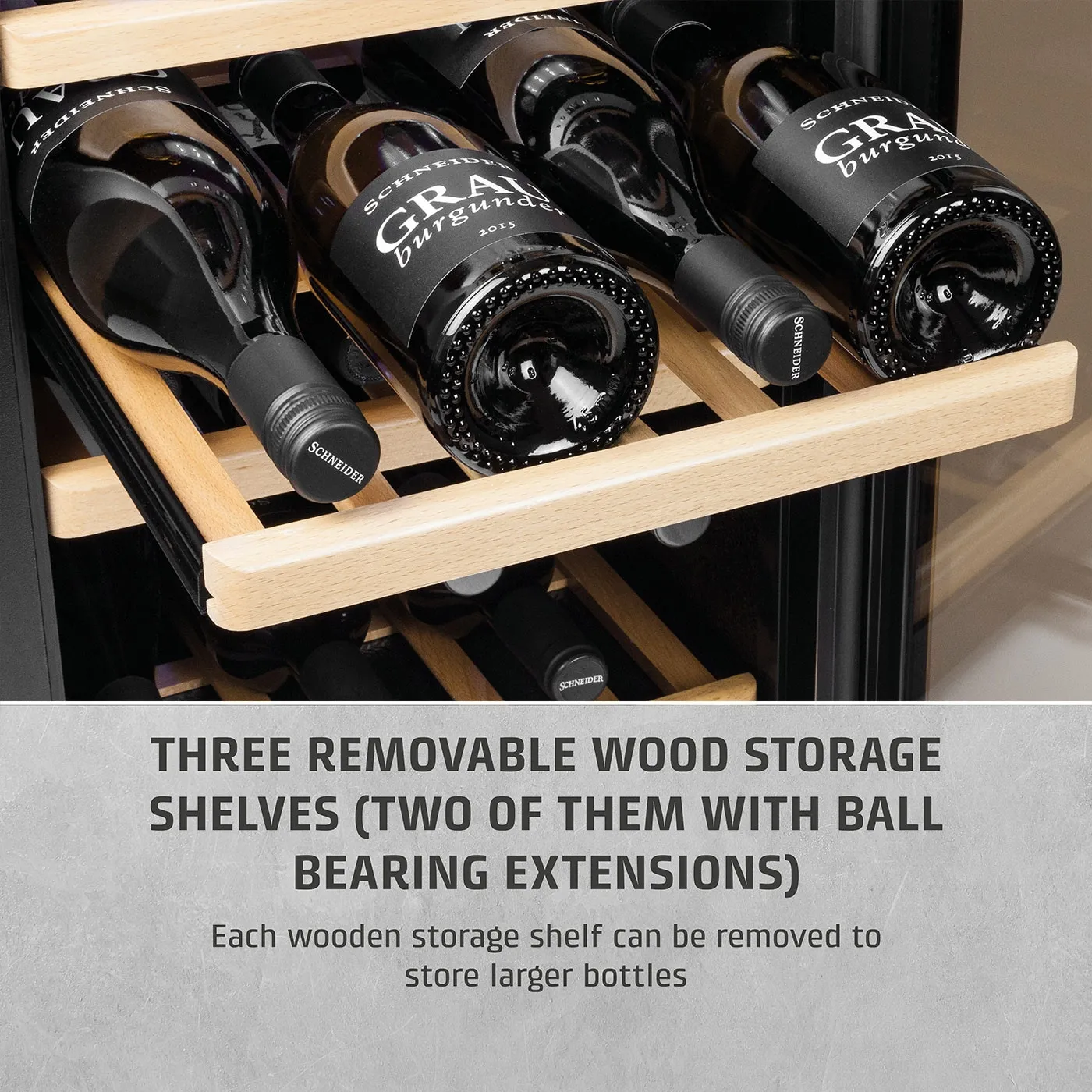 • Eemaldatavad puidust riiulid – praktiline lahendus erineva suurusega pudelitele