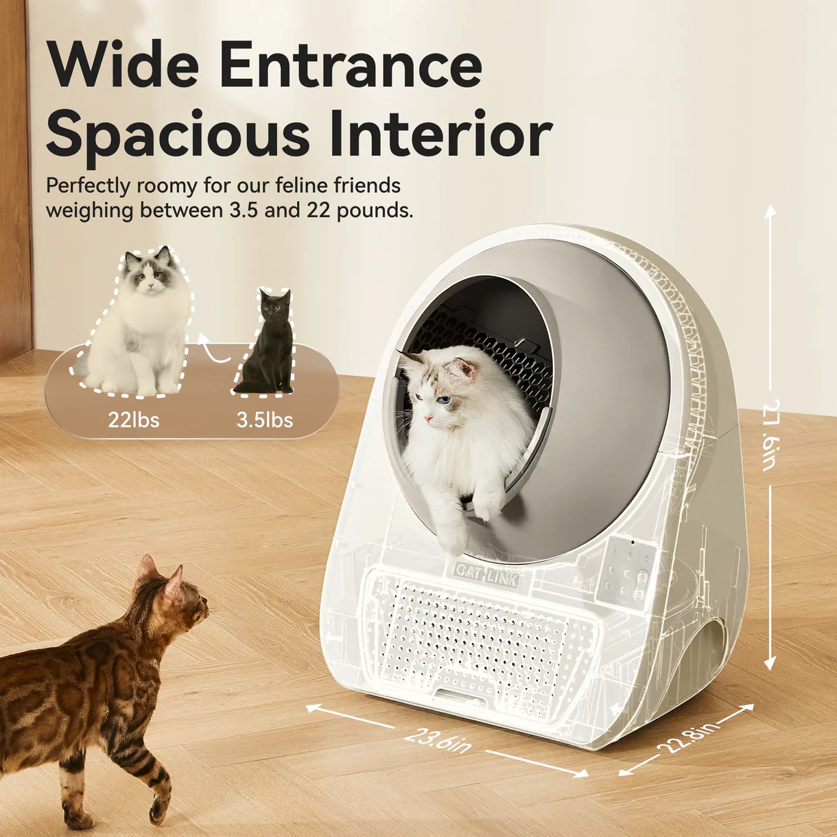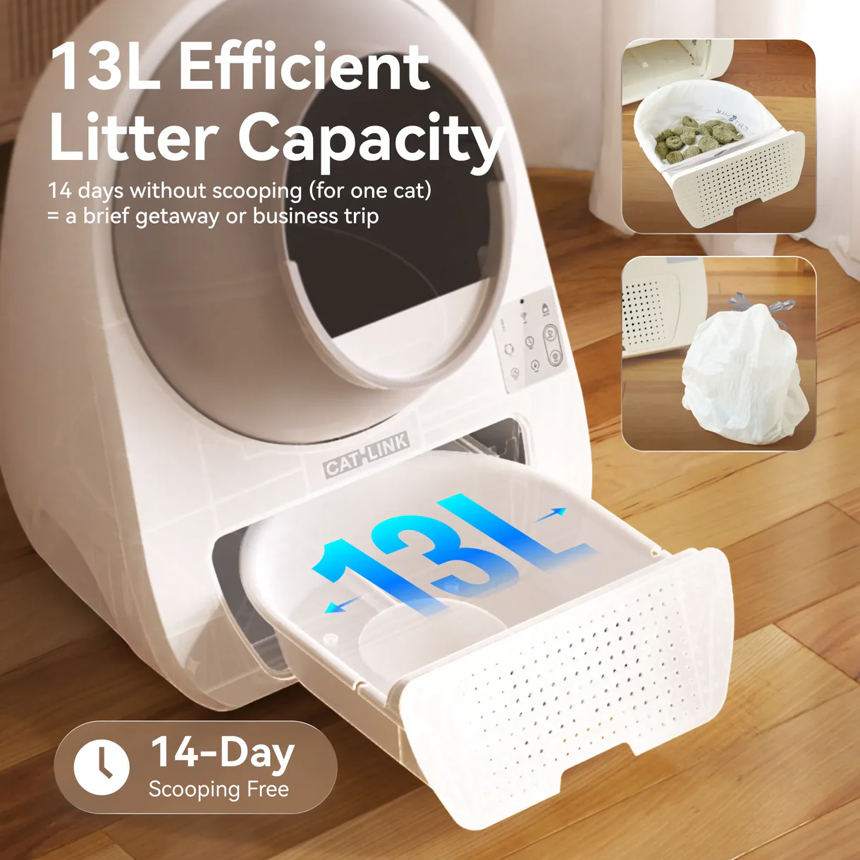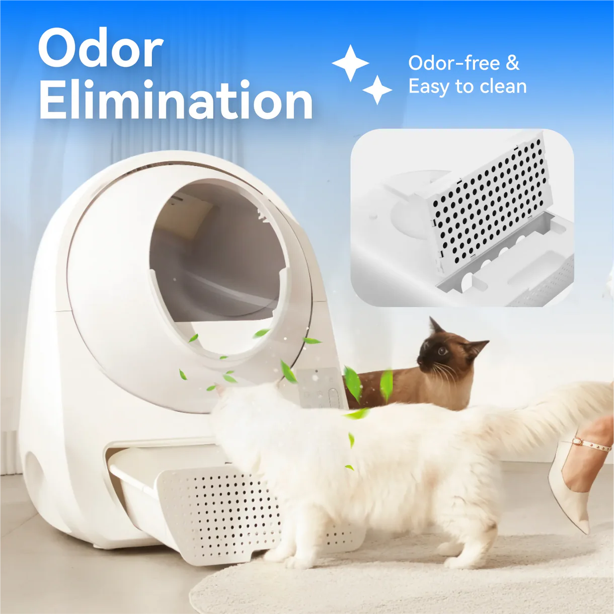 Seade eemaldab kasside väljaheited automaatselt pärast kasutamist, hoiab liivakasti puhtana ning vähendab lõhna levikut kodus.