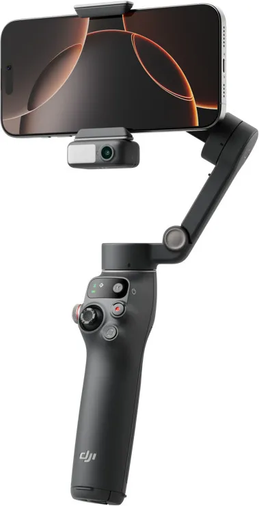 DJI Osmo Mobile 7P – 3‑teljeline nutitelefoni gimbaal mustas värvitoonis. 7. põlvkonna stabilisatsioon, ActiveTrack 7.0, sisseehitatud teleskoopkäepide ja jalus, kuni 10 h aku ning USB‑C telefoni laadimine