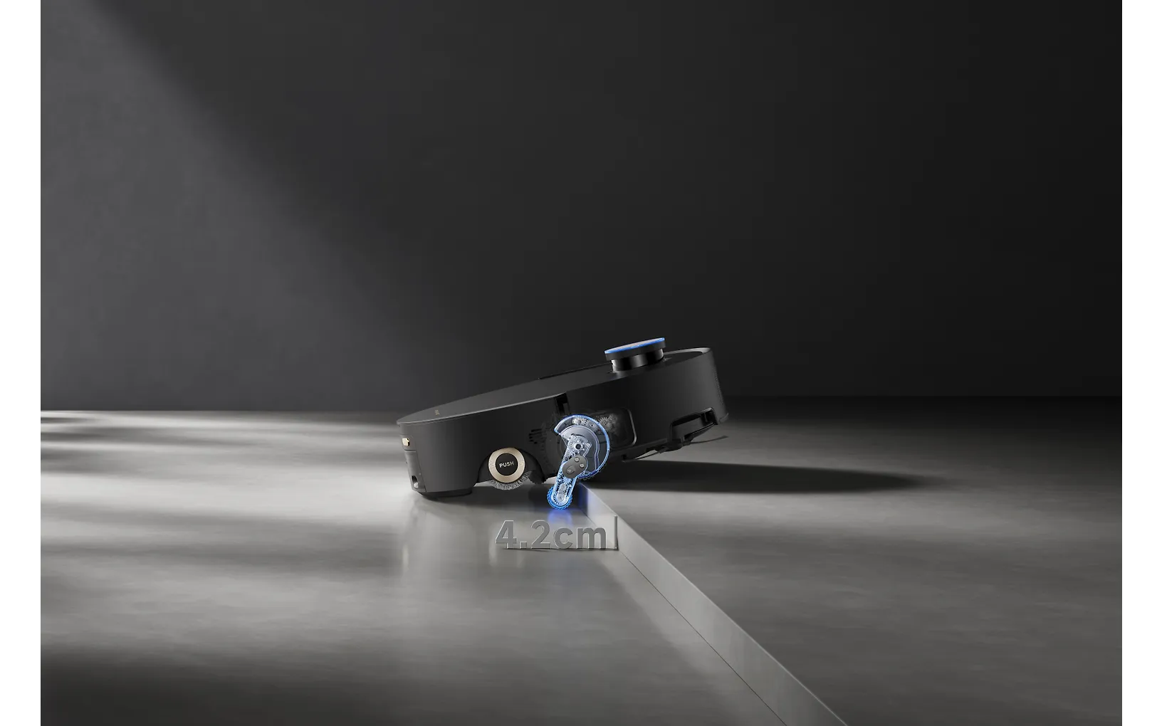 Reguleeritav kolmerattaline süsteem tõstab või langetab robotit vastavalt pinnale, mis hõlbustab lävepakust üle sõitmist, vaipadest libisemist ja kaitseb õrnu pindu.