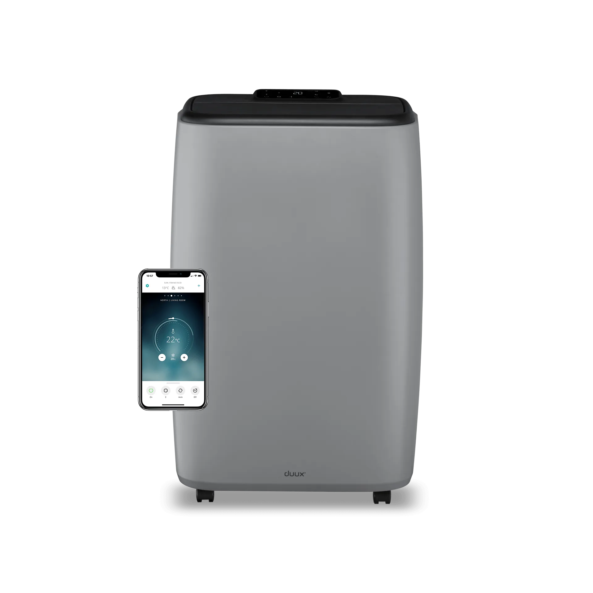 North 9K-ga saad aknad kinni panna ja blokeerida maailma. See elegantne hall kütteseade ja õhukonditsioneer hoiab sind soojas või jahedas, sõltuvalt hooajast. Ergonoomiline kaugjuhtimispult paneb kõik seadistused käeulatusse. Kontrolli seadeid ja jälgi toatemperatuuri tasuta Duux rakenduse kaudu; ühilduv häälassistendi (nt Google Assistant, Alexa) ja nutitelefoniga.