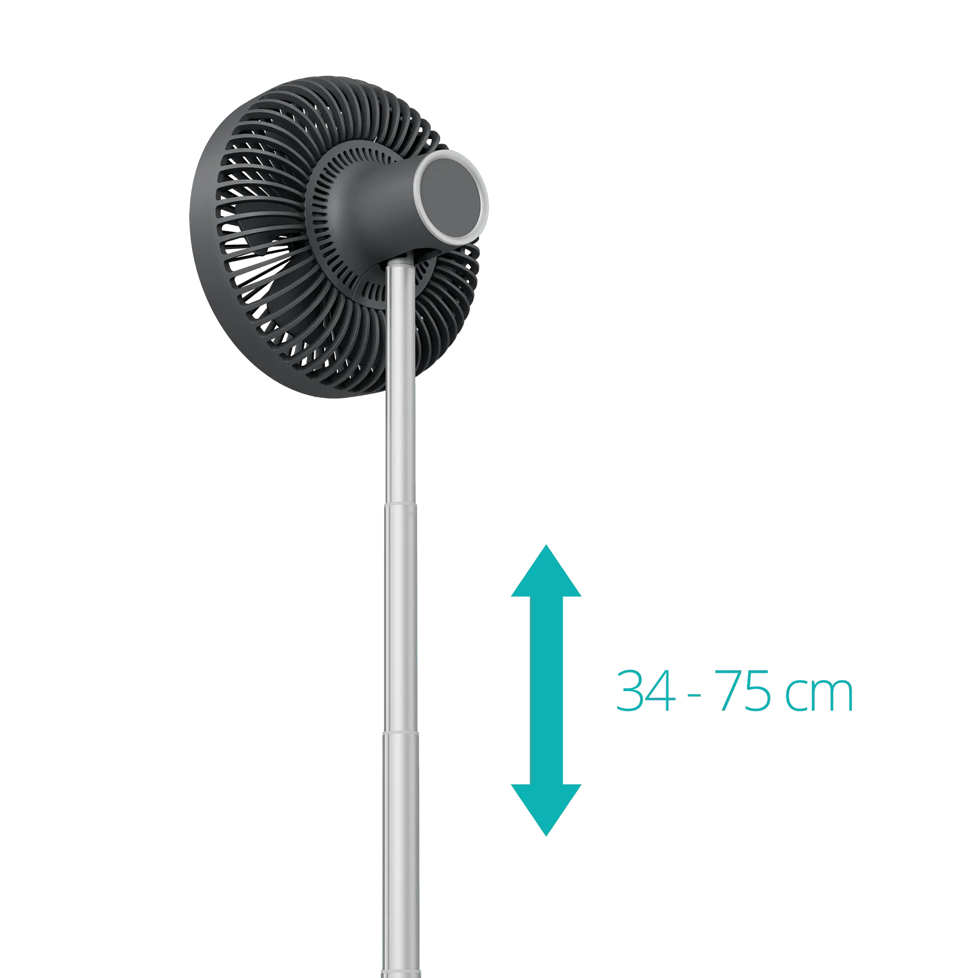 See juhtmevaba, kaasaskantav ventilaator sobib nii laua- kui ka põrandamudelina, on piisavalt vaikne, et töötada sinu laual, ja piisavalt kerge, et mahtuda kotti. Olgu sa tööl, kokkamas, telkimas või kuumas hotellitoas magamas – värske tuuleõhk on alati kaasas. Kus iganes sa ka poleks, Rize hoiab sind jahedana nii päeval kui öösel.