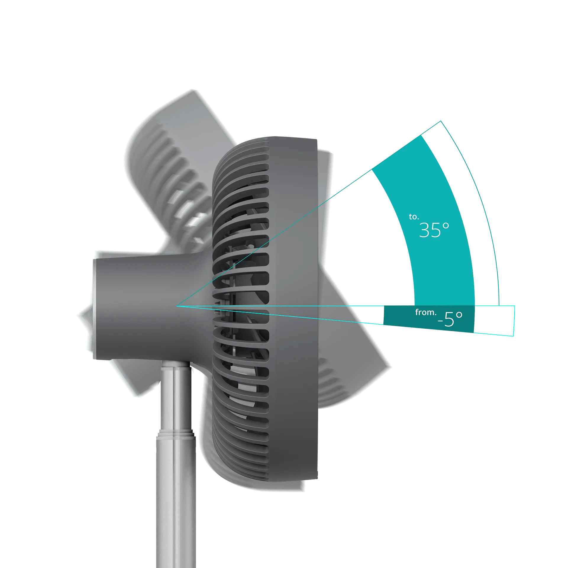 Kui oled leidnud mõnusa koha lõõgastumiseks, saad Rize’i lihtsalt lauamudelist põrandamudeliks muuta. Automaatne 90° pöörlemine ja 35° kaldenurk tagavad optimaalse õhu liikumise – täpselt nii nagu sina soovid.