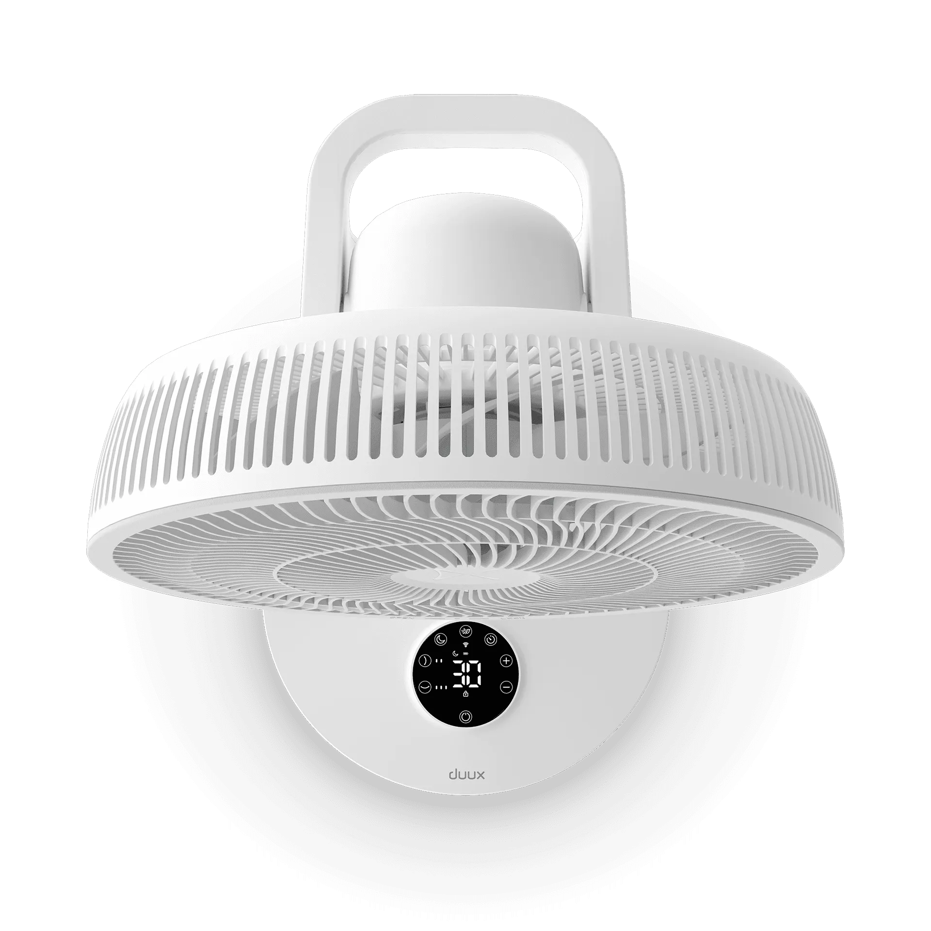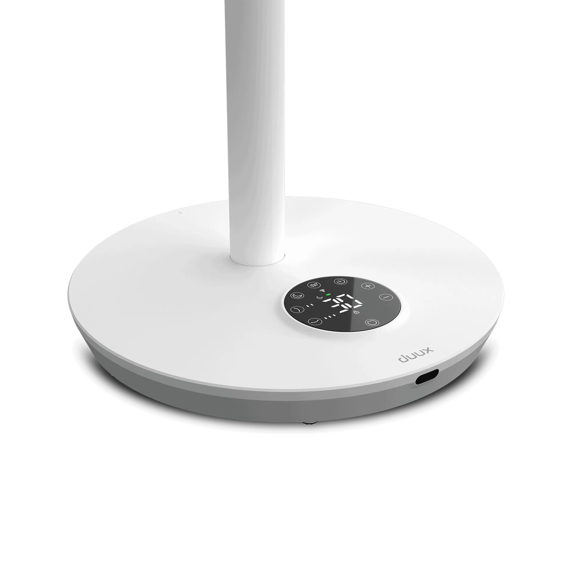 Juhi Whisper Flex 2-e intuitiivse LED-ekraani, kaugjuhtimispuldi või tasuta Duux äpi abil. Soovid häälega juhtida? Kasuta Google Assistanti või Alexat – jahutus ilma püsti tõusmata!