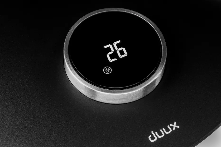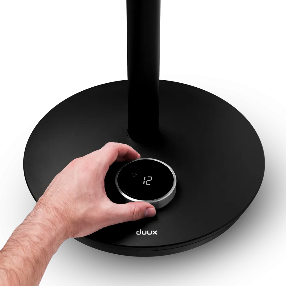 Whisper Flex pakub mitmeid intuitiivseid juhtimisvõimalusi – alumiiniumist pöördnupp ja kõrge lahutusvõimega LCD-ekraan võimaldavad mugavat seadistamist. Lisaks ei pea sa isegi püsti tõusma – ventilaatorit saab juhtida Duuxi nutirakenduse või kaugjuhtimispuldiga, mis kinnitub magnetiliselt seadme tagaküljele.