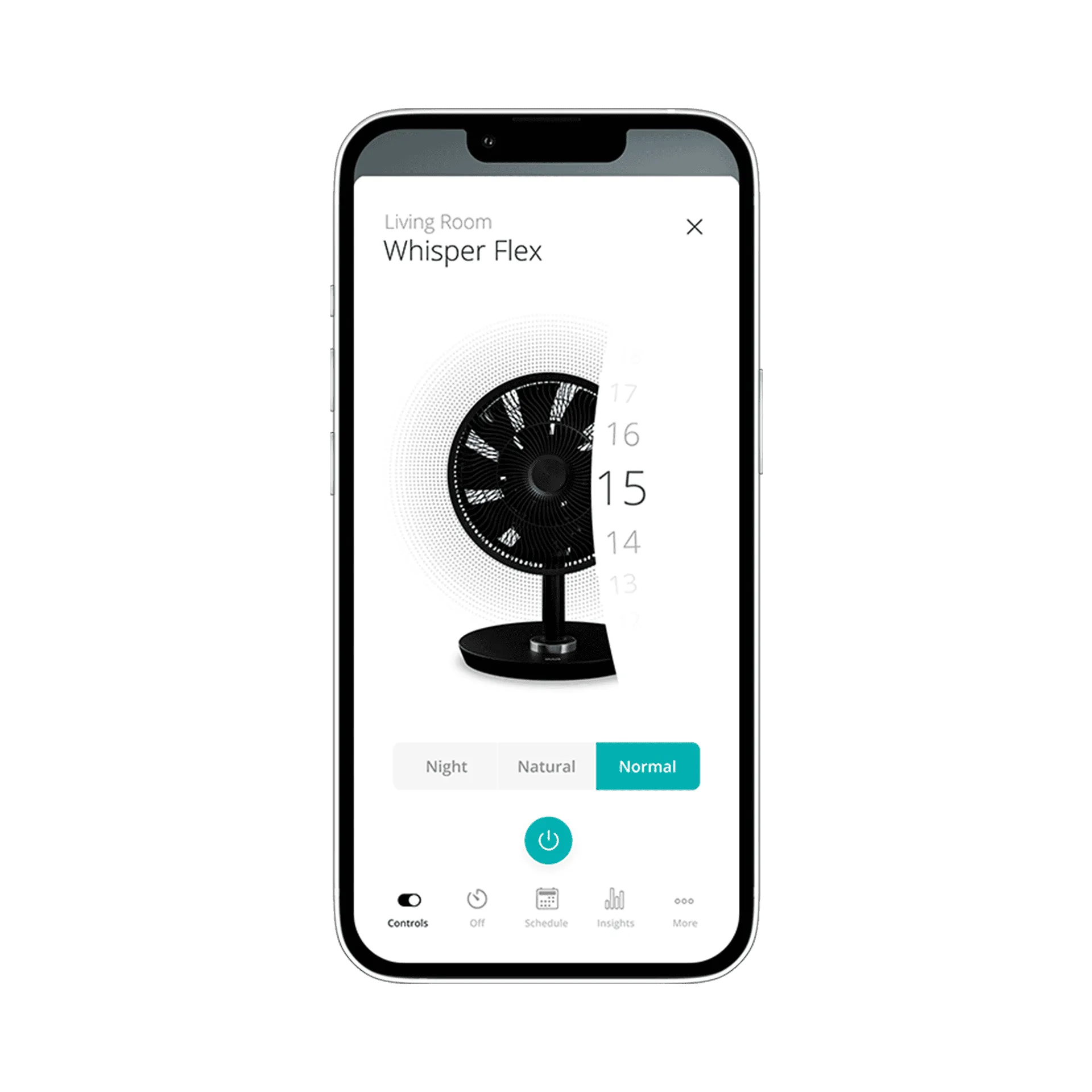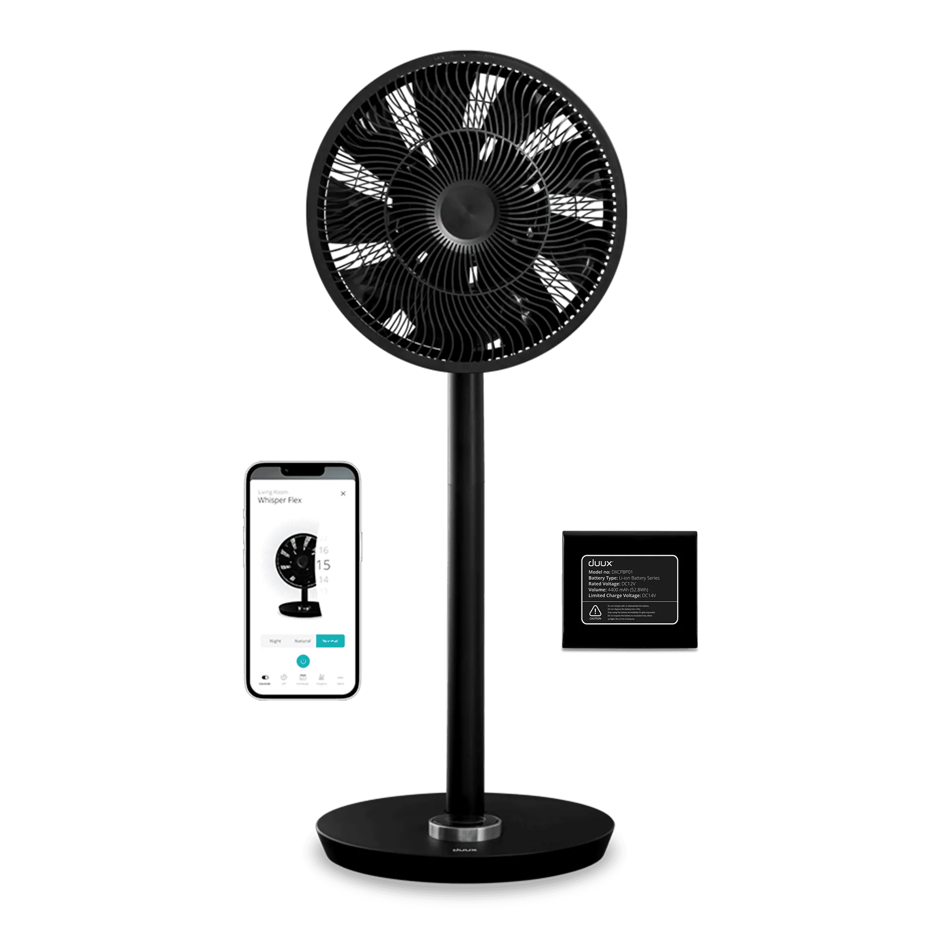 Whisper Flex on esimene disainventilaator, mille saab täielikult juhtmevabaks muuta. Tänu tasuta nutitelefoni rakendusele ja akule saab seda ventilaatorit kasutada kõikjal – näiteks magamistoas või aiakohas, kus sulle meeldib raamatut lugeda. Ventilaatori kõrgust saab reguleerida ning tänu horisontaalsele ja vertikaalsele pöörlemisele saab selle hõlpsasti muuta lauamudelist põrandamudeliks. Ja mis kõige parem? See on sosinvaikne, et saaksid keskenduda lugemisele või rahulikult magada.
