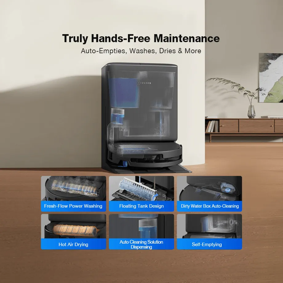 DEEBOT T90 PRO OMNI pakub tipptasemel põrandapuhastuse kogemust. Täielikult uuendatud OZMO ROLLER 3.0 isepesuva mopitehnoloogia ja ZeroTangle 4.0 pusavastase tehnoloogiaga tagab see pusavaba ja laitmatu puhastuse.