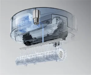 Äärtepuhastus tehnoloogia ulatub 1,5 cm kaugemale. Pehme serv kaitseb mööblit kriimustuste eest, samas kui süsteem kohandub reaalajas, tagades täiusliku puhastuse seinast seina.