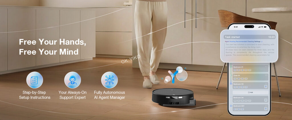 Tutvustame AGENT YIKO-t – sinu nutikat koduabilist. See autonoomne süsteem läheb kaugemale pelgast puhastamisest – see mõistab sinu harjumusi, ennustab vajadusi ja pakub isikupärastatud nutikat tuge.