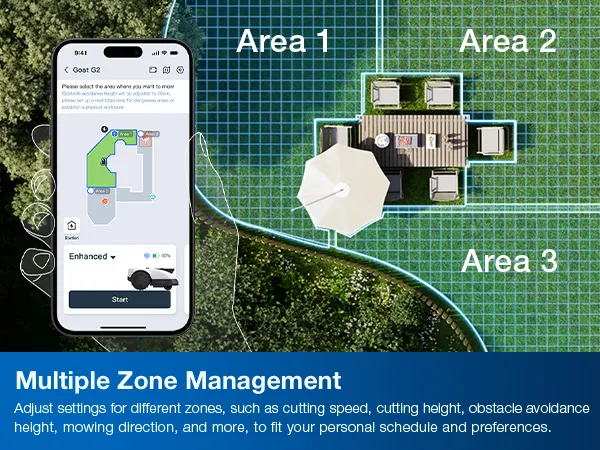 *Andmed ECOVACS laborist. GOAT robotmuruniidukid suudavad niita 400 ruutmeetrit tunnis. Jõudlus efektiivsus põhineb laboratoorsetes tingimustes tehtud testidel ning võib erineda olenevalt tegelikest kasutustingimustest.