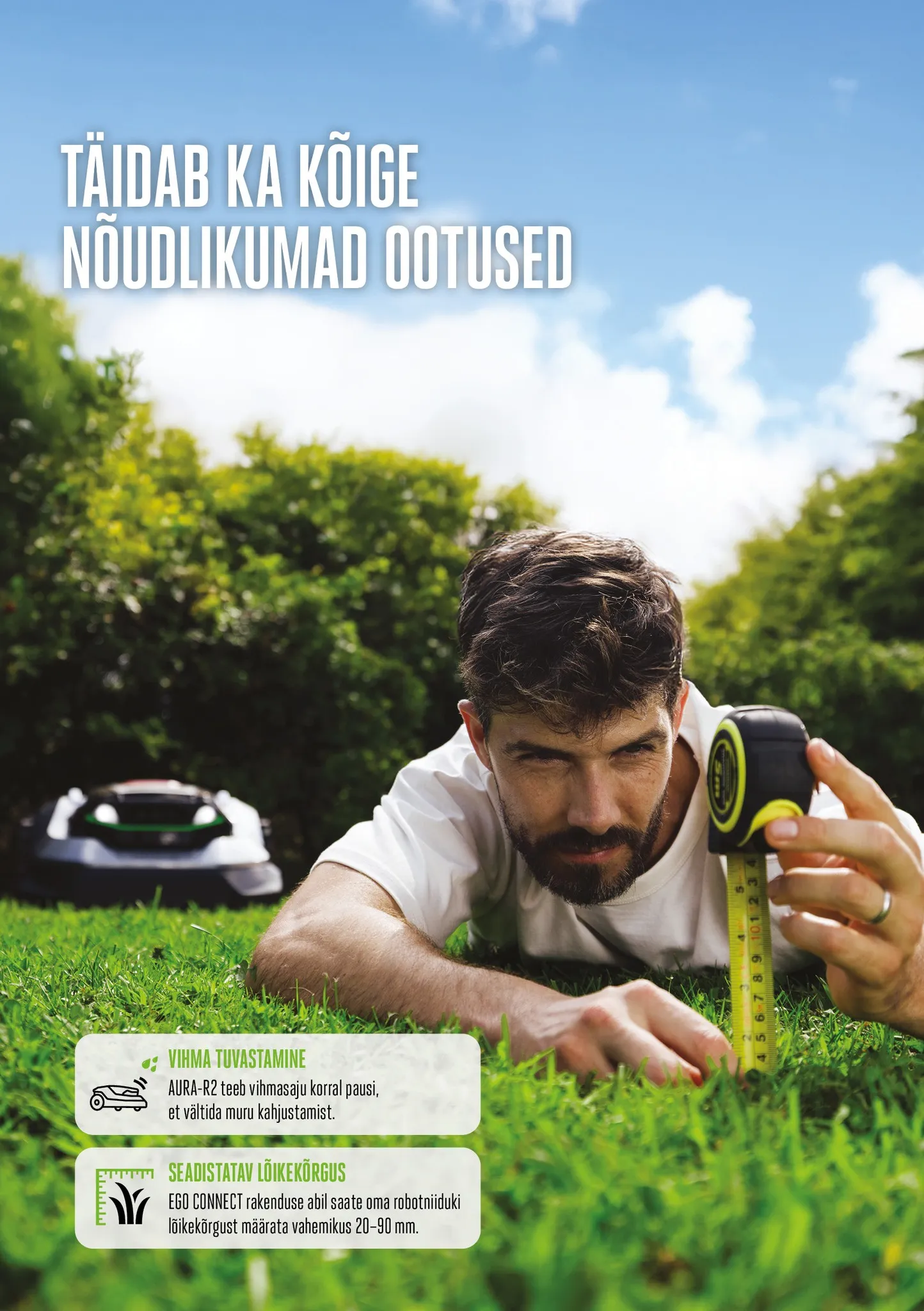 AURA-R2 RMR1500E on loodud kuni 1500 m² niidualadele, luues teie õueala jaoks nutika ja kaablivaba niitmise. See kohandub teie aia kujundusega, reageerib takistustele koheselt ja hoiab iga päev muru puhta ja ühtlasena.