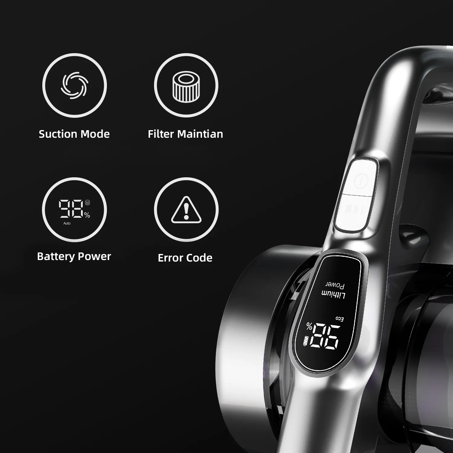 Intelligentne LED-ekraan: kuvab töörežiimi, aku taset, filtri seisukorda jm teavet