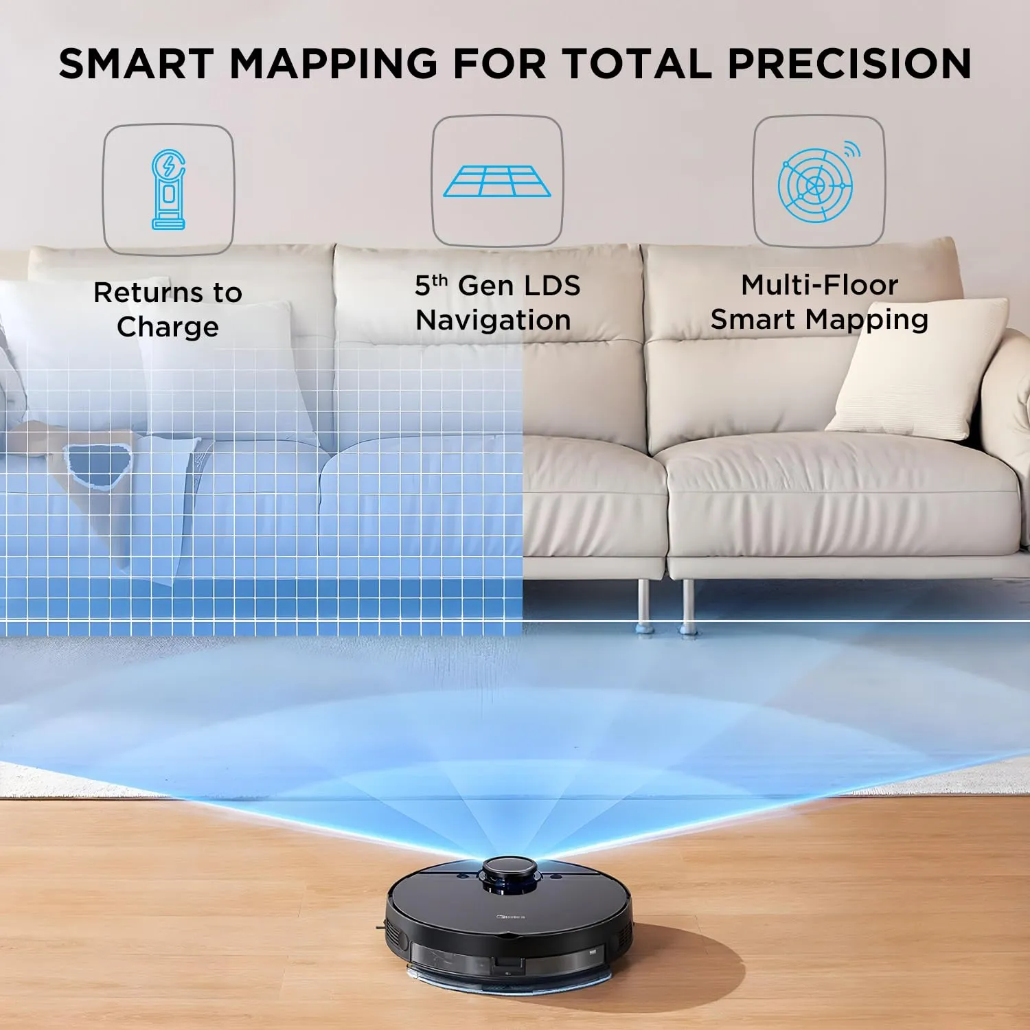 Midea M7 Evo robottolmuimeja – BLDC-mootor 8000 Pa imemisvõimsusega, tolmu- ja veefunktsioon/pesemine, 5200 mAh aku, 30 erineva anduriga navigeerimine (Wi-Fi & Alexa), kuni 180 min tööaega
