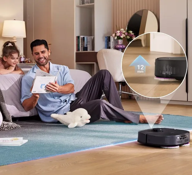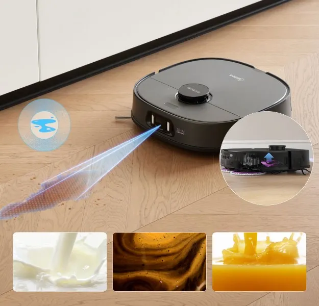 Intelligentne prahi klassifitseerimine eristab täpselt märgi plekke ja kuiva mustust, võimaldades V15 Pro Ultra-l reaalajas kohandada oma puhastusmeetodeid.
