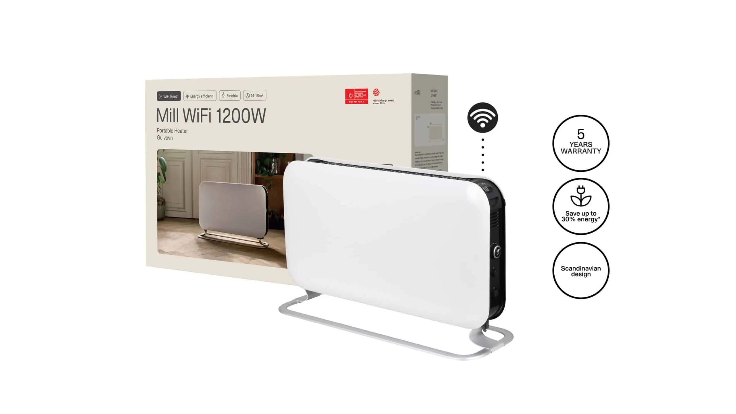 Mill CO1200WIFI3 disainkonvektorküte soojendab ruume kuni 18 m². Selle koguvõimsus on 1200 vatti ning see Mill kütteseade sisaldab integreeritud WiFi-moodulit, mis võimaldab seda juhtida ükskõik kus maailmas. Mill WIFI3 mudeleid saab juhtida ka Homey rakenduse kaudu. Järgmisel aastal saab Mill Wifi3 integreerida ka Google Assistanti, Alexa ja Apple HomeKiti süsteemidega.
