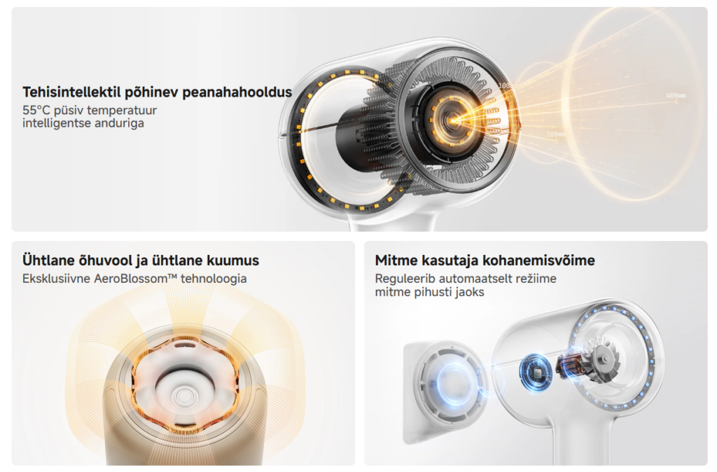 on tipptasemel nutikas stiilivahend, mis ühendab kaasaegse tehnoloogia ja juuksehoolduse parimad praktikad, et pakkuda kiiret, õrna ja professionaalset föönitulemust kodustes tingimustes.