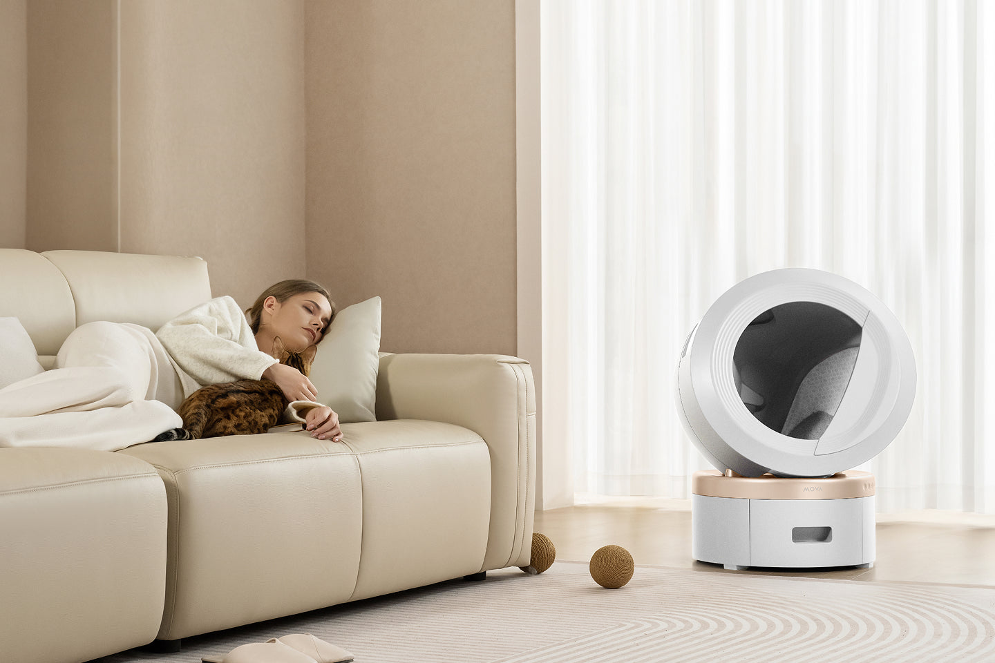 MOVA MeowgicPod LR10 on ultra‑ruumikas, nutikas ja isepuhastuv kassiliivakast, mis muudab liivakasti hoolduse sinu ja sinu kassi jaoks märgatavalt lihtsamaks. Tänu suurtele mahutitele, automaatsele puhastusele ning värskendussüsteemile hoiab see koduse õhu puhtana ja lõhnad eemal, võimaldades kuni umbes 15 päeva vaevata kasutust ilma käsitsi lahtikaevamiseta.