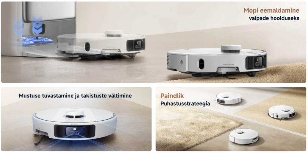 Mopid tõusevad automaatselt vaipade tuvastamisel, vältides nende märgumist.