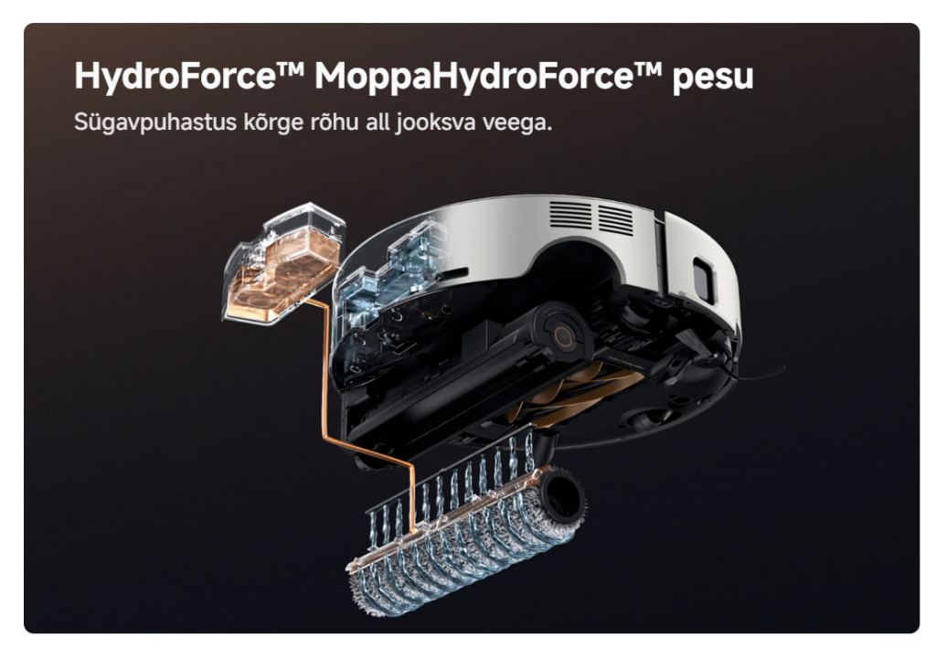 Tõhus tolmu‑ ja moppimine ühes seadmes – puhastab põhjalikult kõiki kõvemaid ja pehmemaid pindu.