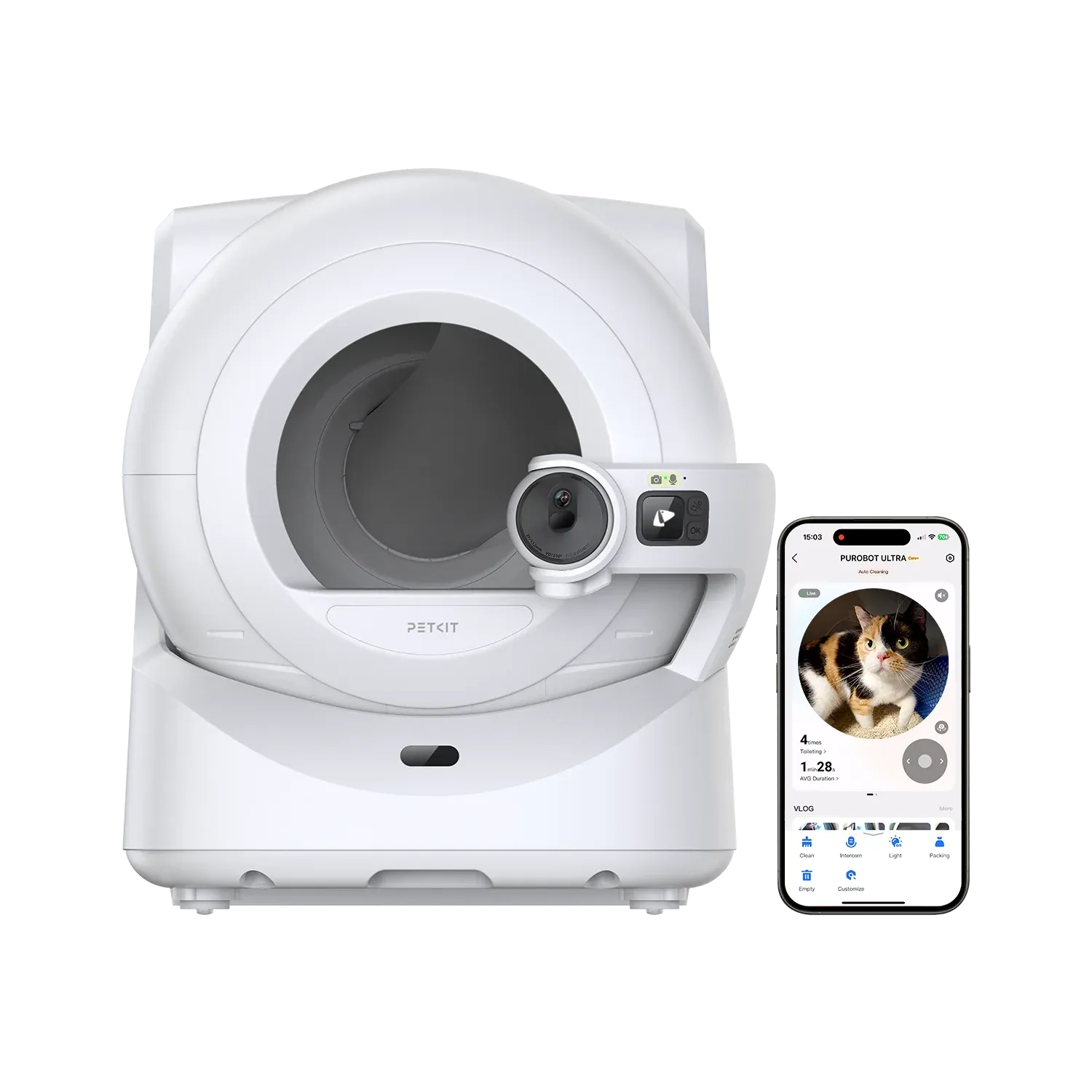 Sisseehitatud 1080p AI kaamera, mis pöörleb 180° ja pakub 210° vaatevälja, võimaldab mugavalt jälgida oma lemmiklooma käitumist nii liivakasti sees kui ka väljaspool. Süsteem tuvastab täpselt iga kassi näotuvastustehnoloogia abil, analüüsides selle unikaalseid omadusi, keha suurust ja karvamustrit. See teeb seadme suurepäraseks mitme lemmiklooma omanikele! Lisaks teeb kaamera väljaheiteid ja tükke pildistades varakult terviseprobleemide avastamise. Purobot ULTRA genereerib ka üksikasjalikke aruandeid teie lemmikloomade tervise kohta – neid leiate rakendusest.