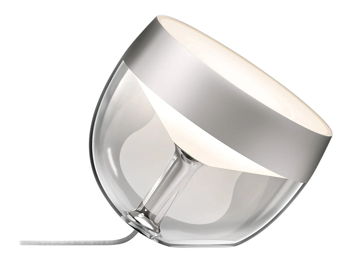 Philips Hue Iris Silver Special Edition on nutikas laualamp, mis ühendab kaasaegse tehnoloogia ja elegantse disaini. Integreeritud LED‑valgusallikas võimaldab valida nii 16 miljoni värvitooni kui ka reguleeritava valge valguse (2000–6500 K), muutes iga ruumi meeleolu koheselt. Lamp sobib nii õhtuseks meeleoluvalgustuseks, taustavalgustuseks kui ka aksentvalguseks, rõhutades interjööri stiili.