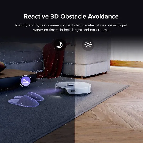 3D struktuurvalguse ja infrapuna pildistamistehnoloogia abil saab Reactive 3D takistuste vältimise süsteem aidata robottolmuimejal tuvastada ja vältida potentsiaalseid ohte põrandatel, nii eredas kui ka pimedas ruumis, pakkudes muretut puhastuskogemust.