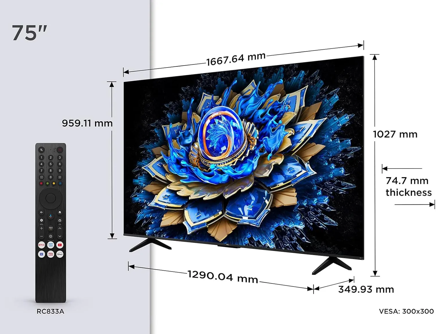 TCL 75T69C QLED Google TV (2025) 75″ 4K Ultra HD telekas – säravad Quantum Dot värvid, Dolby Vision & Atmos, Google TV nutiplatvorm ja ulatuslik ühenduvus.