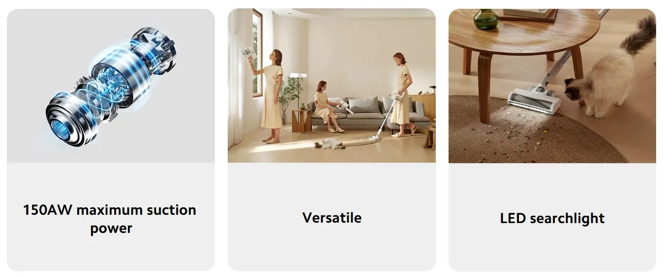 Võimas imemine, pikk aku tööaeg ja valgustus muudavad kogu kodu puhastamise lihtsamaks