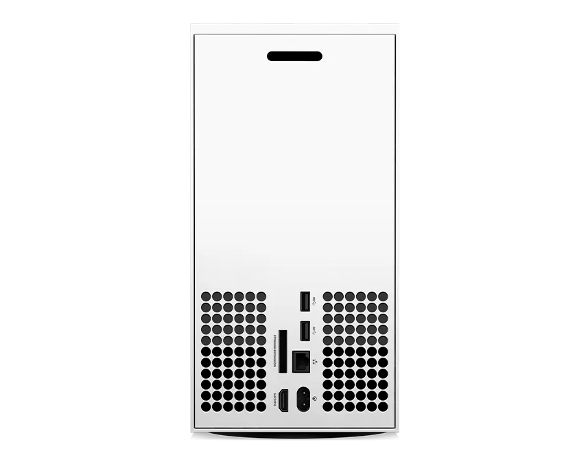 Xbox Series X mõõdud on 15.1 x 15.1 x 30.1cm, seega mahub see mugavalt telerialusele. Ühendamiseks on olemas 1 HDMI port, 1 RJ45 port ja 3 USB 3.1 porti.